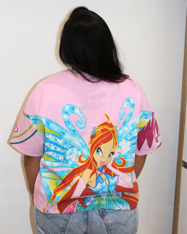 ✨ Chemise upcyclée oversize – Édition Winx Enchantix (Rose) ✨
