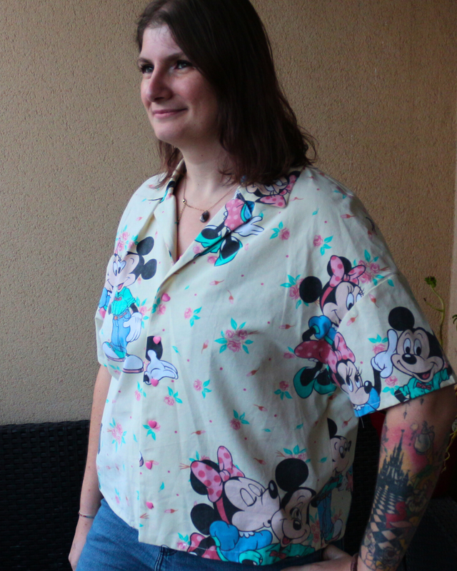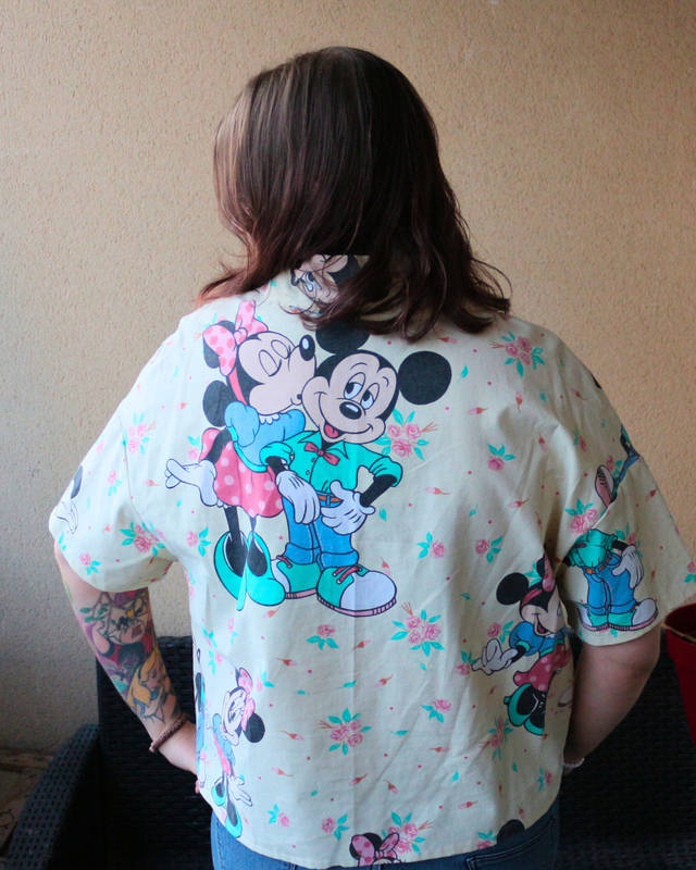 🎀 Chemise Upcyclée – « Romance Rétro : Mickey & Minnie » – Taille 36