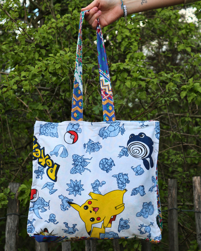 ⚡ Sac Cabas Upcyclé – Modèle Unique « Pokémon »