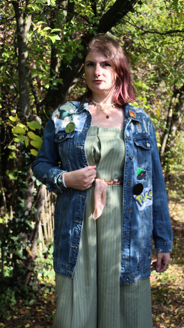 🪩 Veste en Jean Pokémon – Pièce Unique & Éco-Responsable - Taille L🌿