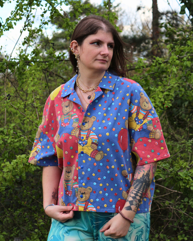 ✨ Pièce artisanale unique réalisée dans mon atelier à partir d’un ancien drap recyclé, cette chemise allie une douceur réconfortante à un style ludique et éco-responsable. Un véritable câlin à porter !