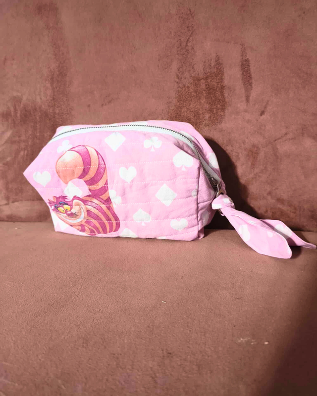 Cette trousse matelassée a été réalisée entièrement à la main dans mon atelier, à partir d’un tissu recyclé soigneusement chiné. Son motif met en lumière l’univers mystérieux, décalé et malicieux du Chat du Cheshire, avec ses couleurs vives et son esprit fantasque propre à Alice au Pays des Merveilles.
