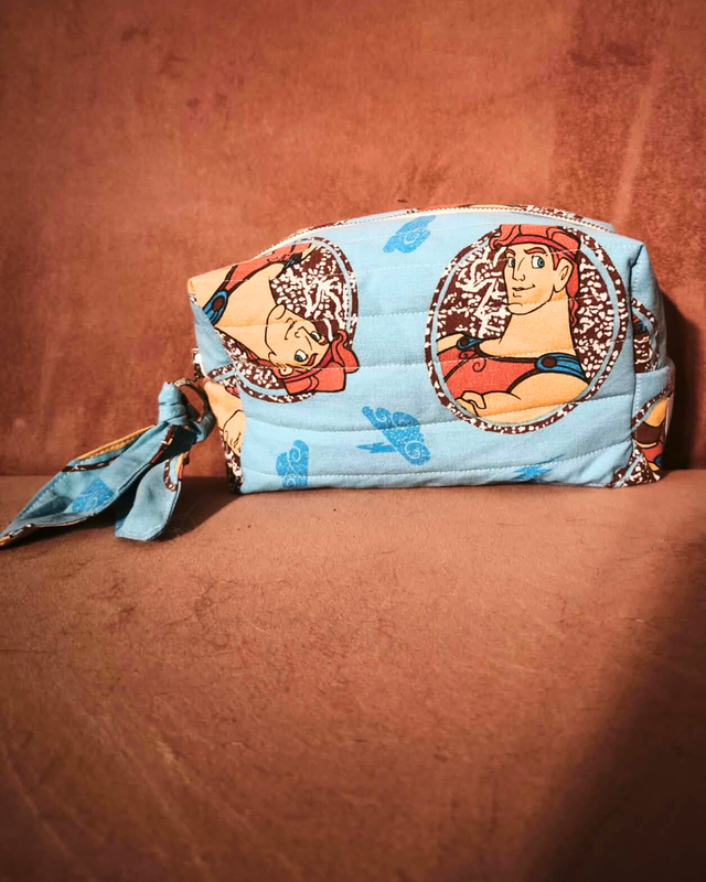Cette trousse matelassée a été réalisée entièrement à la main, dans mon atelier, à partir d’un tissu recyclé soigneusement chiné. Elle rend hommage au mythique univers d’Hercule, avec ses couleurs vibrantes, son ambiance héroïque et son esthétique inspirée de la Grèce antique version Disney. Une pièce unique, pleine de caractère, d’énergie et de nostalgie ! ⚡🏺💙