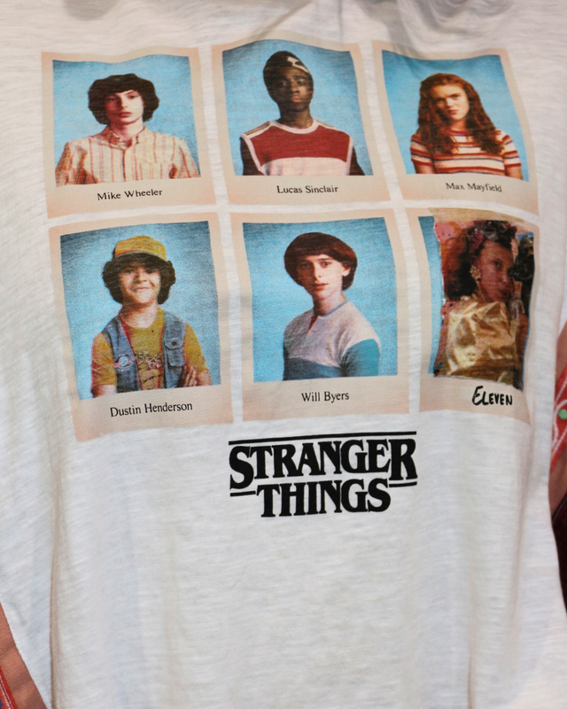 - Le Buste : T-shirt blanc arborant les portraits polaroïds des héros de Stranger Things.